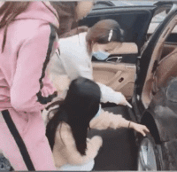女司机:咦?轮胎什么时候掉的?