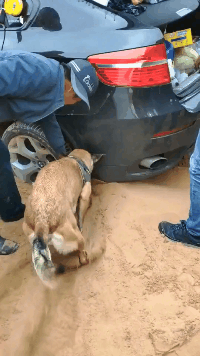 狗子加把劲全靠你了,车快挖出来了