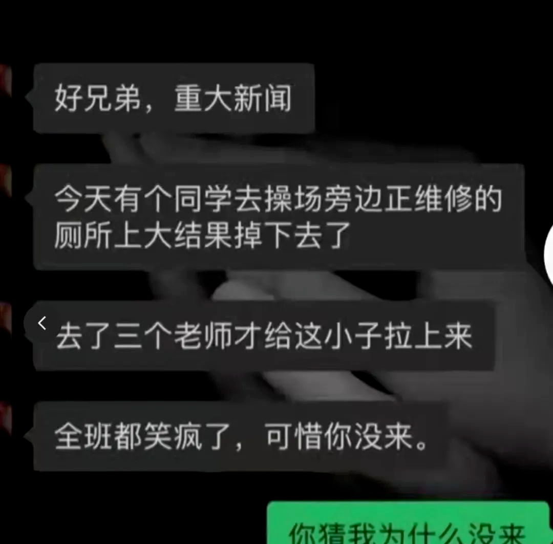 兄弟,有个同学上厕所掉粪坑里了!你猜是谁?咦你去哪了?