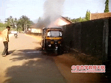 车着火了,赶紧倒点汽油救火