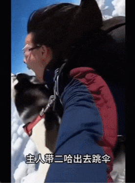二哈被主人骗去跳伞,表情绝了(我都分不清是真的还是AI了)