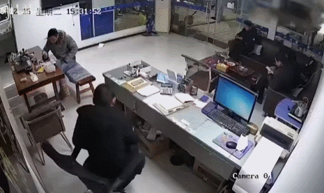 老哥抢银行,被旋转门单杀