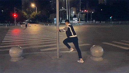 过马路,还要练跑步啊!